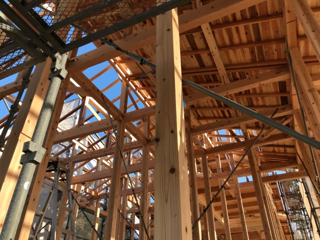 上棟は、「棟上げ(むねあげ)」、「建前(たてまえ)」、「建方(たてかた)」とも呼ばれます。家としての立体感が出て、大きさがわかるようになります。