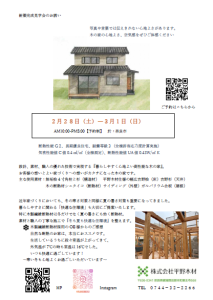 | イベント詳細 | https://hirano-mokuzai.com/news/2-28-3-1%e3%80%80%e6%96%b0%e7%af%89%e5%ae%8c%e6%88%90%e8%a6%8b%e5%ad%a6%e4%bc%9a |