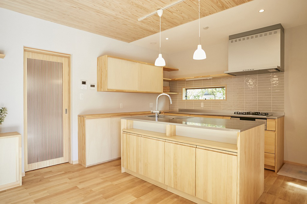 ウッドワン製のセパレートタイプを採用し、収納は造作で仕上げた、機能的で暮らしに寄り添うキッチン。