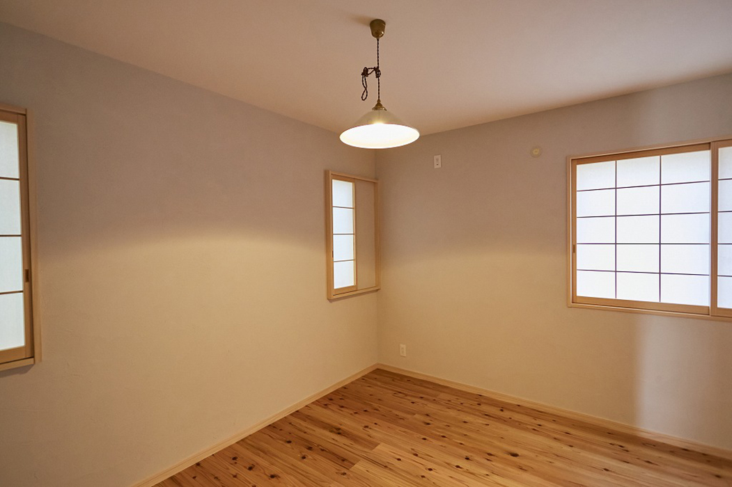 北側に設けた落ち着いた寝室。障子越しの柔らかな光が心地よい。
