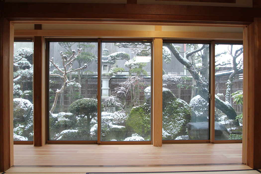 四季折々の美しい風景を生活の一部として取り込むことができるよう、障子は全開にできるように設計されている。