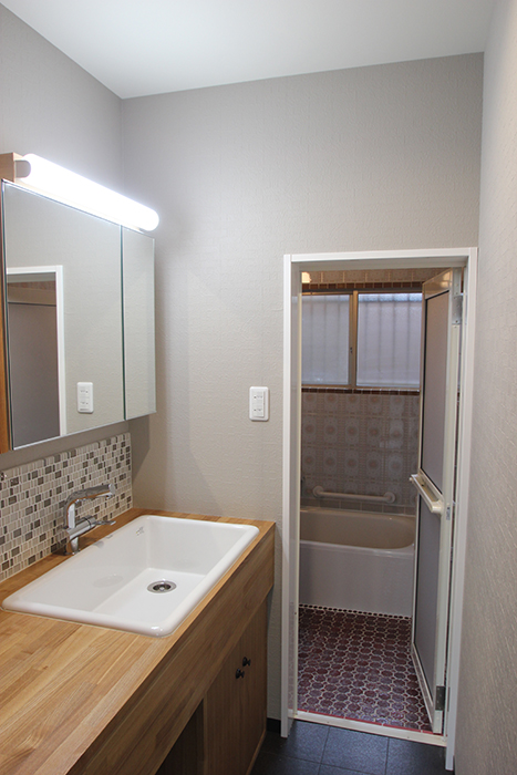 芸術品のように美しい浴室タイルは残し、浴槽と窓を新しいものに交換。古き良きもの、想いを大切にするリフォームだ。